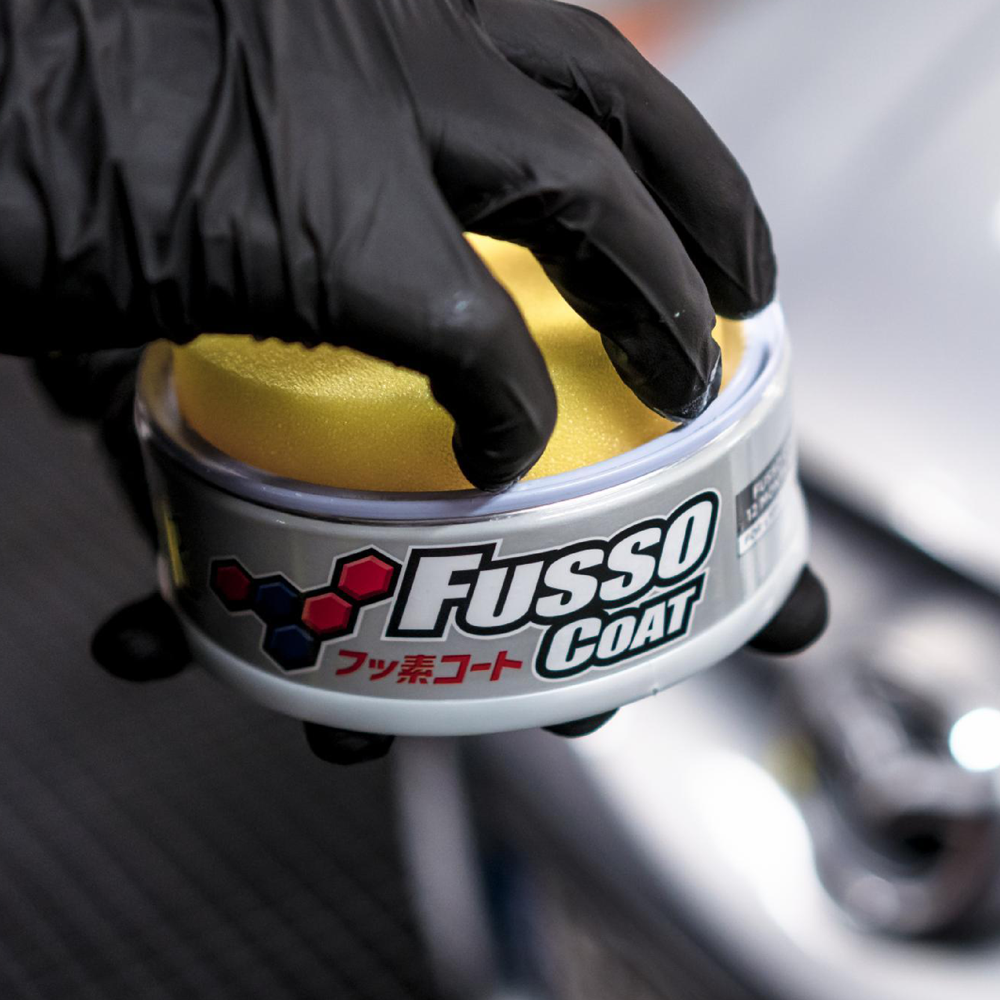 Fusso to po japońsku po prostu „fluor”, rozumiany jako fluoropolimer (PTFE – politetrafluoroetylen). To najbardziej „śliska” substancja znana człowiekowi. Zapobiega tarciu elementów mechanicznych i dlatego znajduje zastosowanie m.in. w protezach kończyn,czy w kombinezonach kosmonautów. Ze względu na ekstremalną „śliskość” polimeru PTFE, pokrycie nim np. patelni (zwane Teflonowaniem) wymaga wcześniejszego zmatowienia powierzchni, a następnie utwardzenia w wysokiej temperaturze (360 stopni). Największym wyzwaniem było przeniesienie tego procesu do świata pielęgnacji samochodu. Nasi eksperci znaleźli sposób na łączenie PTFE z powierzchnią lakieru samochodowego bez konieczności matowania! By to osiągnąć, formuła Fusso Coat łączy różne fluoropolimery i substancje, które umożliwiają ich wiązanie z lakierem samochodowym, szybami, a nawet takninami.